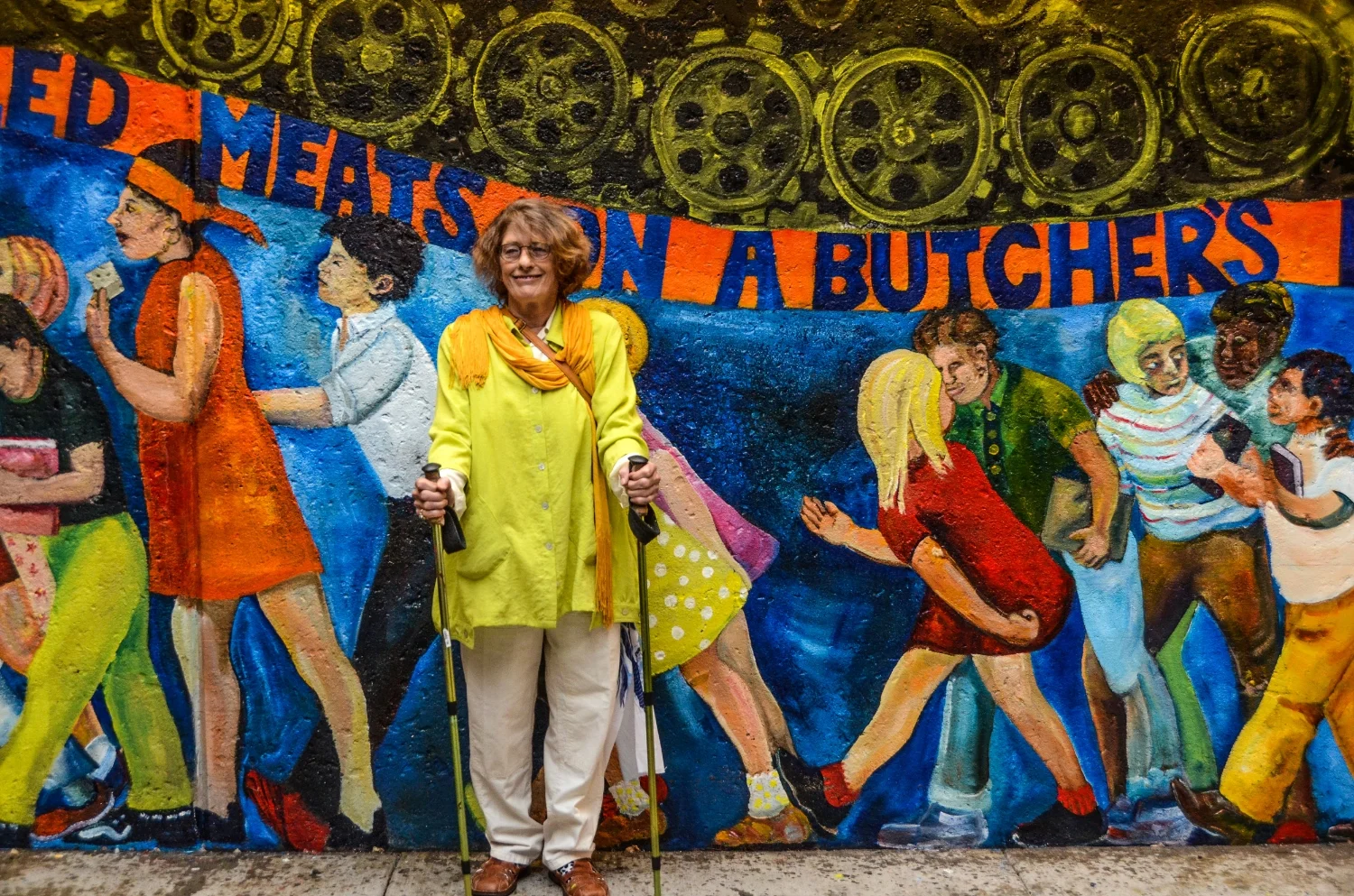 When Caryl Yasko first mixed her paints on the wall beneath the viaduct at East 55th Street and Lake Park Avenue in 1972, she was at the forefront of the public art movement that began on Chicago’s South Side in the 1960s. Yasko returned to Hyde Park this summer to restore her mural “Under City Stone” and preserve a piece of history. The result of that work was presented to community members at a dedication ceremony on Wednesday, August 19, 2015.